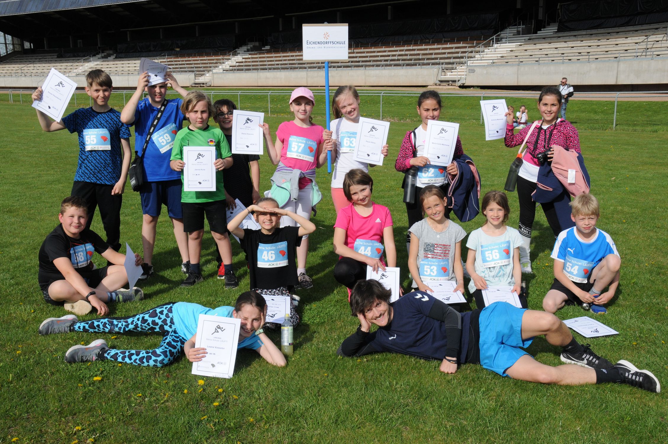 „Es hat uns unheimlich beeindruckt, dass die Kids wirklich alles gegeben haben, bis zum letzten Meter! Für die Kinder war das eine sehr gute Aktion“, das war die Meinung des Organisationsteams Regina Kessler, Silvia Kunz und Steffi Rygol. Die Eichendorff-Schule hatte prozentual zur Schülerzahl der Schule die meisten Kinder am Start und darf sich nun auf eine Fortbildung zum Thema Bewegung gesponsert von der AOK freuen.