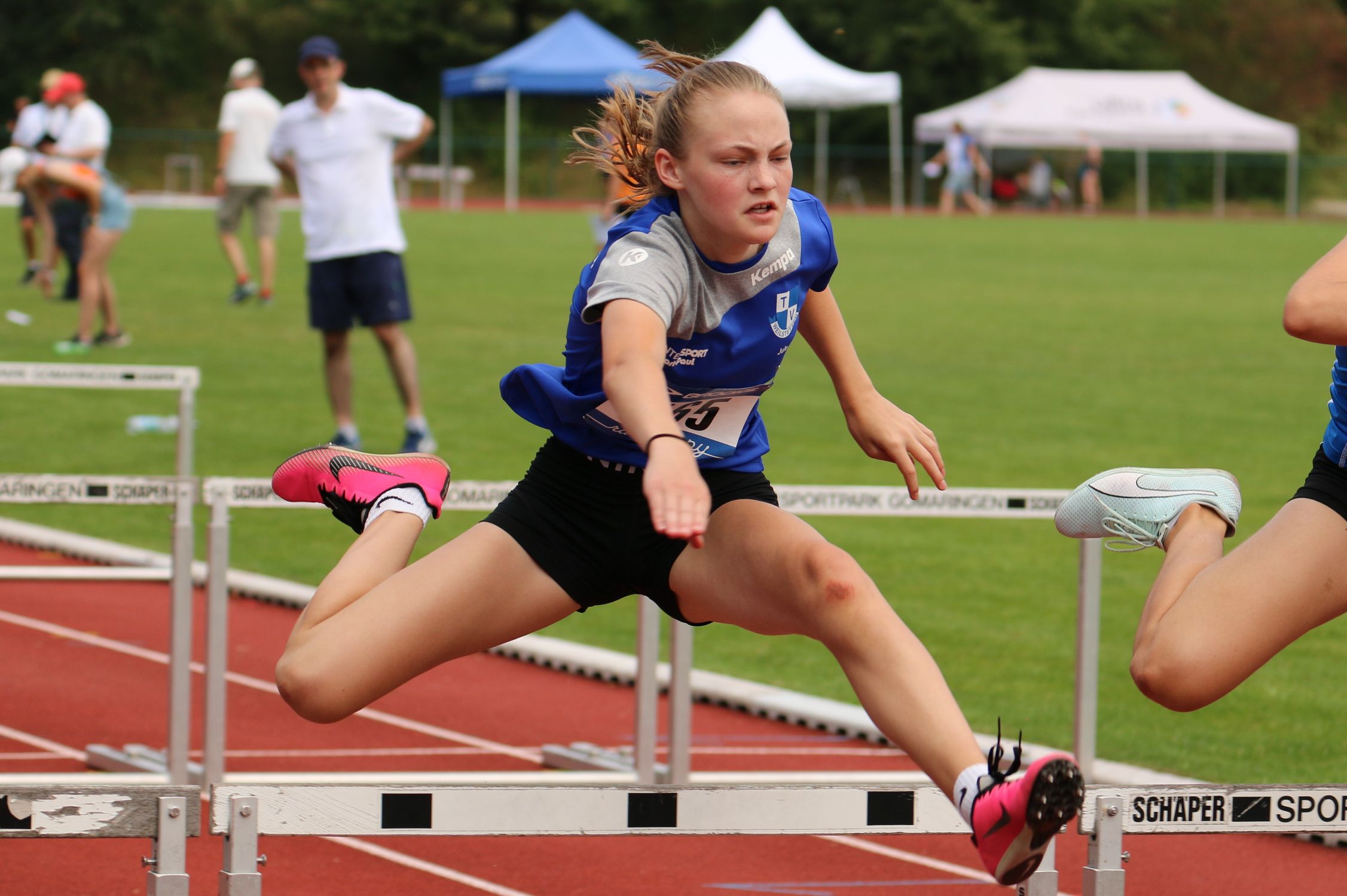 Im Hochsprung der W15 siegte mit Daria Dunke mit 1,59 Meter wieder mal ein Winnender Sprungtalent. Das Kugelstoßen ging jeweils an die „Spezialistinnen“: In der W15 lag Anna-Maria Weber (LG Lauter) mit 11,10 Meter deutlich vorn. In der W14 übertraf die Rottenburgerin Antonia Heberle mit 10,23 Meter erstmals die 10er-Marke. Der 5er-Sprungtitel bei der W14 ging mit 15,03 Meter an Magdalena Melzer (Rommelshausen-Kernen). Einen viertel Titel für Jule Trickel verhinderte Stabhoch-Ass Anna Hiesinger mit 9,12 Sekunden über die Hürden. Auf ihre Spezialdisziplin verzichtete sie, so dass hier mit Anne Gaub ebenso wie in der W14 Mina Kölle (beide 2,40 m) Ulmer Mädchen ihren Heimvorteil zum Titelgewinn nutzen konnten.